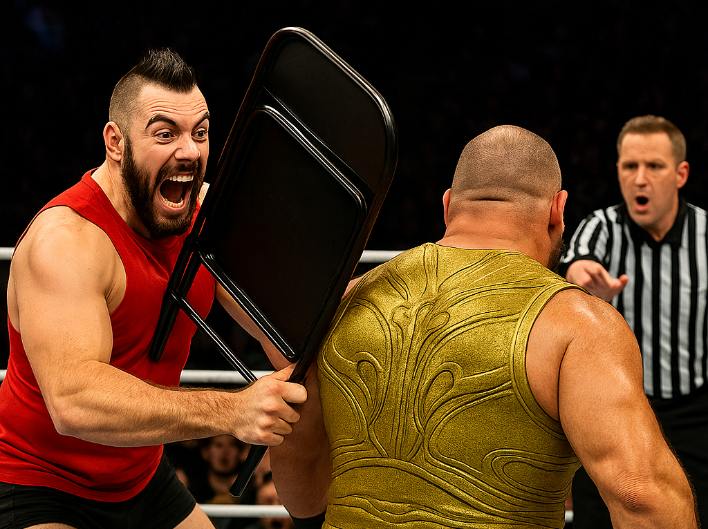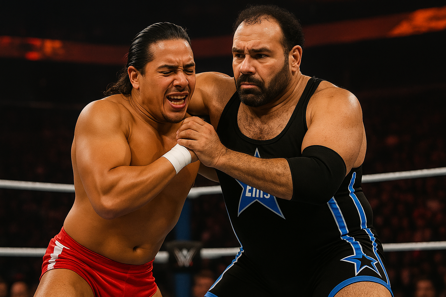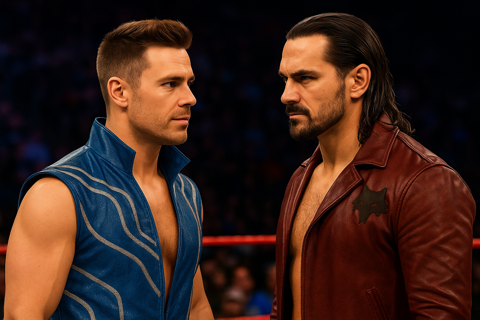 Suddenly, the lights shift to red strobes. A wolf-howl echoes ominously through the arena as Magnus Wolfe steps through the curtain, dragging his fingers slowly along the scar carved across his brow. He doesn’t rush. He doesn’t acknowledge the crowd. He just stares through the ring as if he’s already dissecting Lawson’s anatomy in his mind.