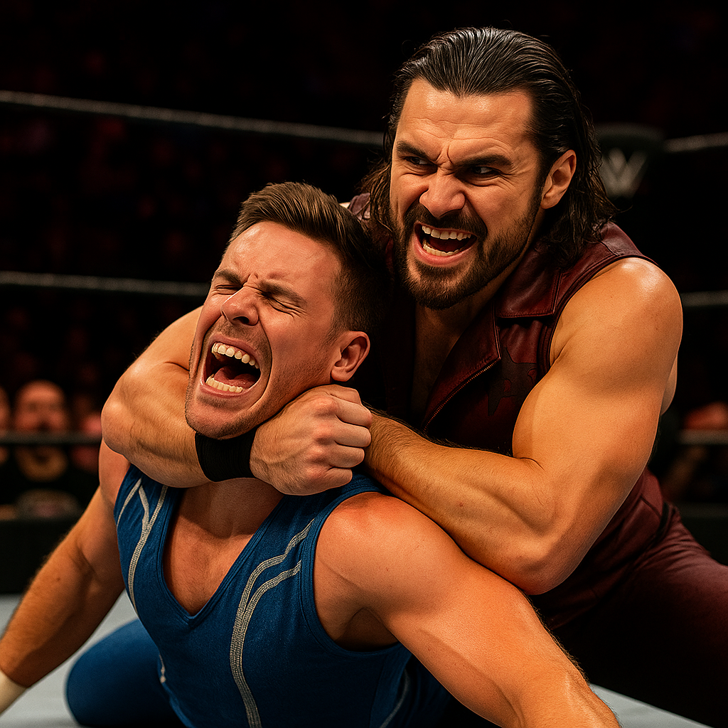 Jet collapses to the mat, clutching at his throat and shoulder, gasping for air. Wolfe stands above him and smirks—taunting, cruel. He reaches down—but Jet suddenly springs to life and lands a desperation enzuigiri!